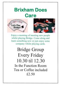 Enjoy a morning of meeting new people whilst playing bridge. Come along and learn something new or just enjoy some company whilst playing cards. Tea or Coffee is included. £2.50 per person, we look forward to meeting you.